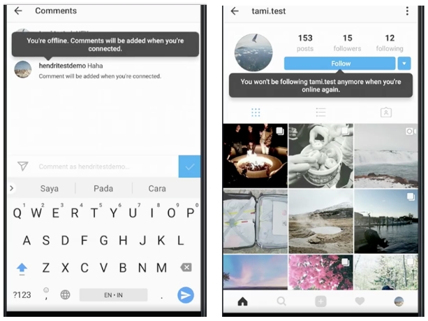 Offline mode features include: much more cached feed content, liking and commenting offline, visiting profiles, unfollowing and includes support for the explore, activity and profile tabs.